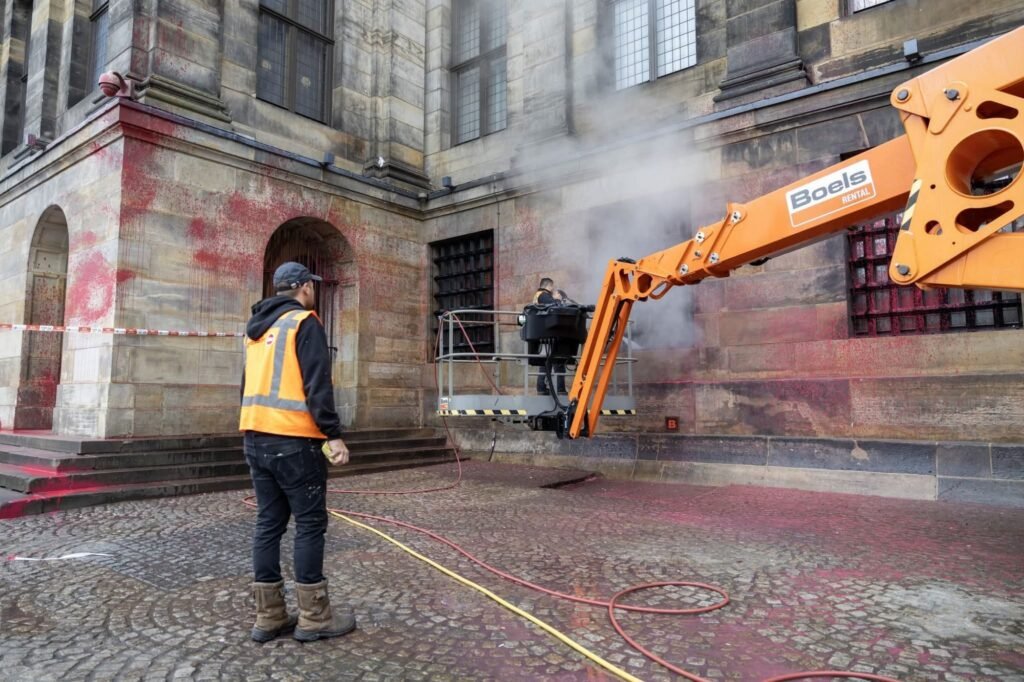 تشويه القصر الملكي في أمستردام بالطلاء الأحمر: احتجاج رمزي يثير جدلاً واسعاً
